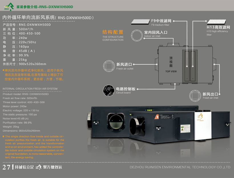 名稱:內(nèi)外循環(huán)單向流新風(fēng)系統(tǒng)